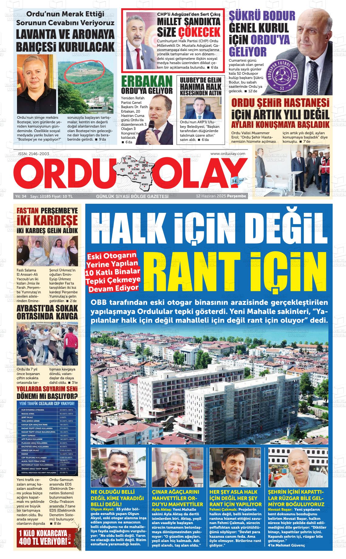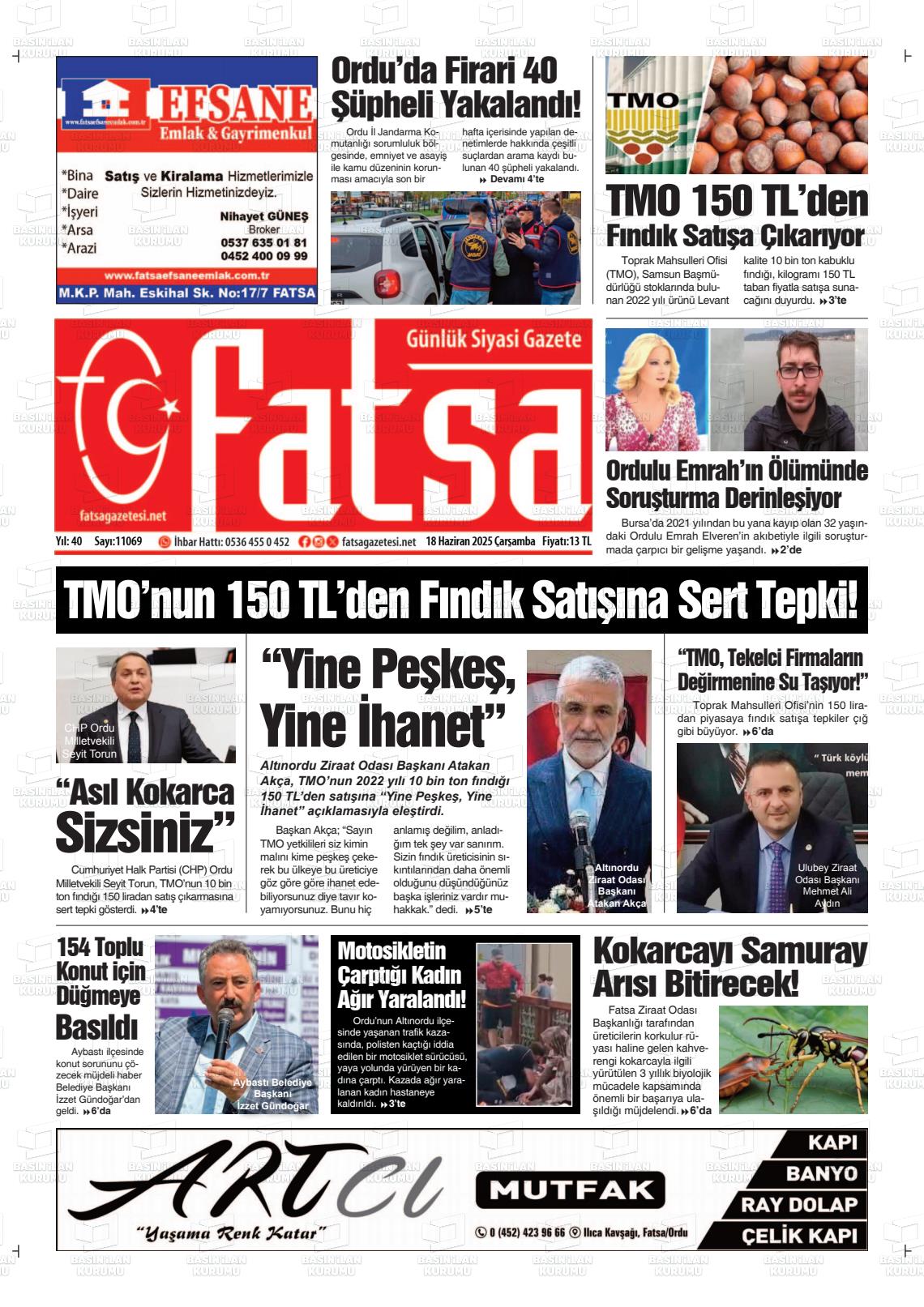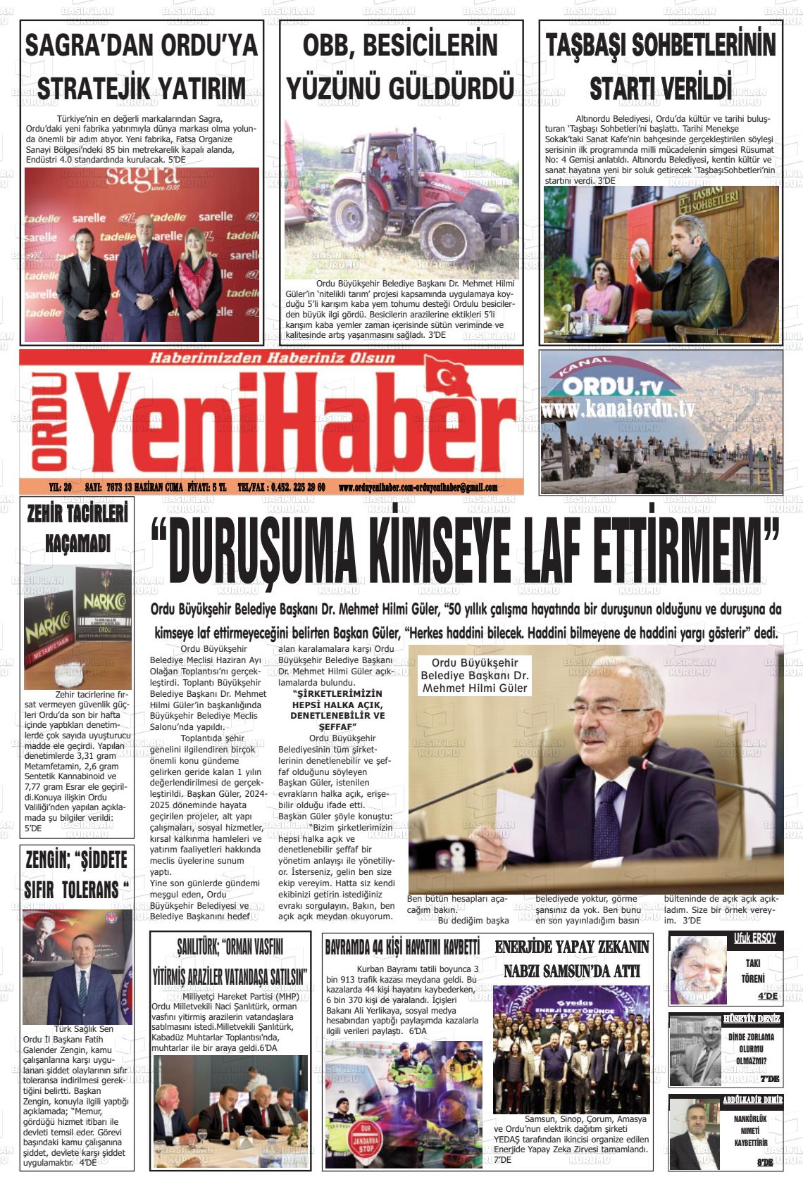 Ordu Yerel Gazeteleri 23 Ocak 2026, Cuma Günü Manşeti
